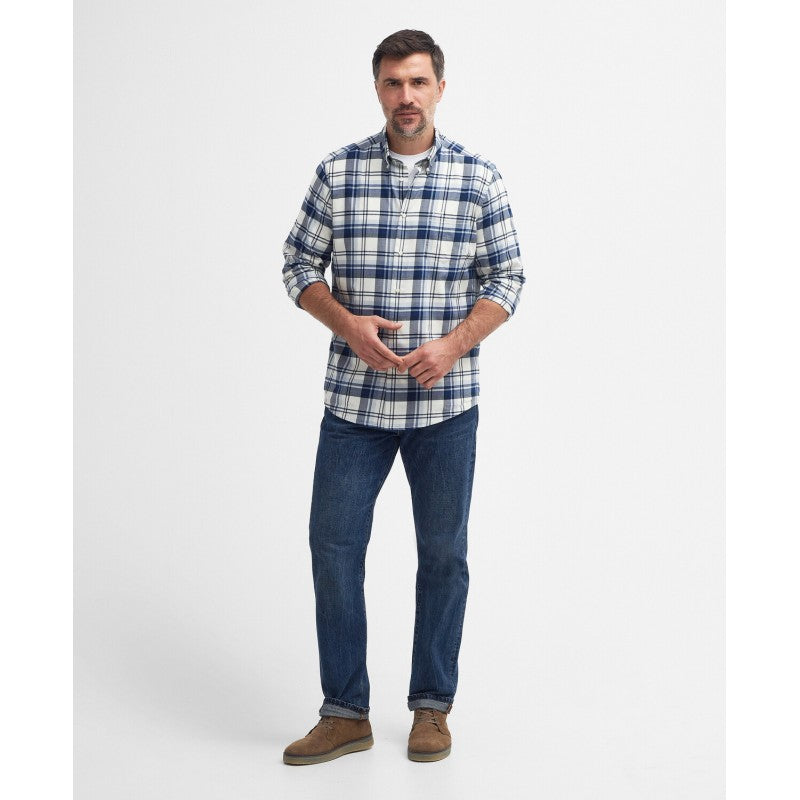 Barbour Falstone Tailored skjorte i Blå Bomuld. Her får du en skjorte i blå bomuld med et flot ternet mønster. Den har lange ærmer, en button-down krave, brystlomme på venstre side med Barbours logo, knaplukning og justerbare knapper ved manchetterne.