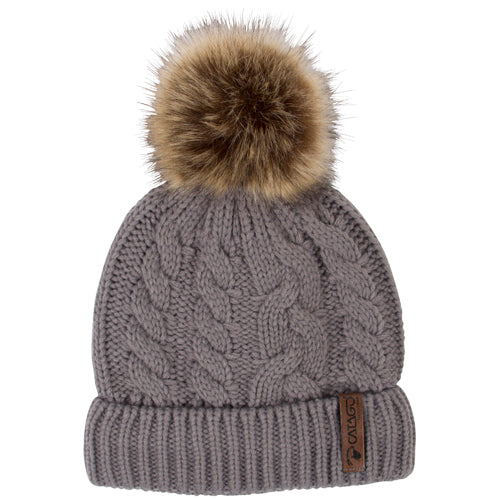 Denne skønne strikhue er varm og dejlig at have på med en ekstra blød fleece foring. Kvast i imiteret pels på toppen, der kan tages af, når huen skal vaskes.