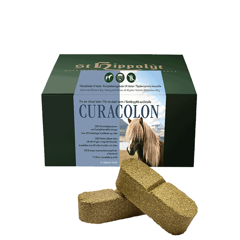 Førstehjælpsbaren ved fordøjelsesudfordringer CuraColon indeholder et stort spektrum af urter og planteekstrakter samt plantekul og esparsette. Denne kombination medvirker til at balancere hestens fordøjelse og tarmmikrobiom på naturligvis. for en modstan