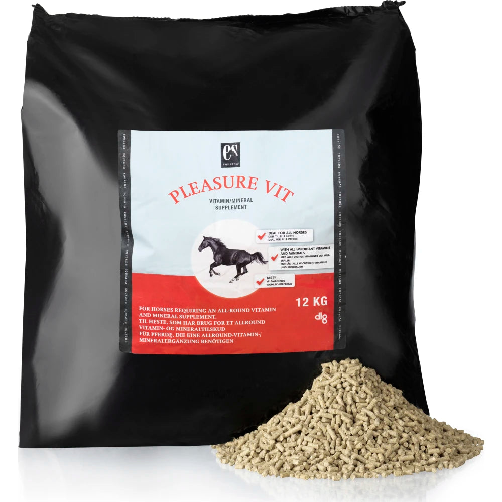 Equsana Pleasure Vit er et velsmagende tilskudsfoder med vitaminer og mineraler. Equsana Pleasure Vit kan bruges både som tilskudsfoder og som supplement til kraftfoder. Blandingen er ideel til heste, som har brug for et allround vitamin- og mineraltilsku