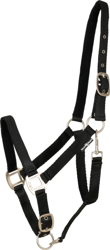 Blød nylongrime med foring på næsebånd og nakkestykke. Den er Justerbar ved nakkerem og under kæben. Spænderne er i mat stål.
