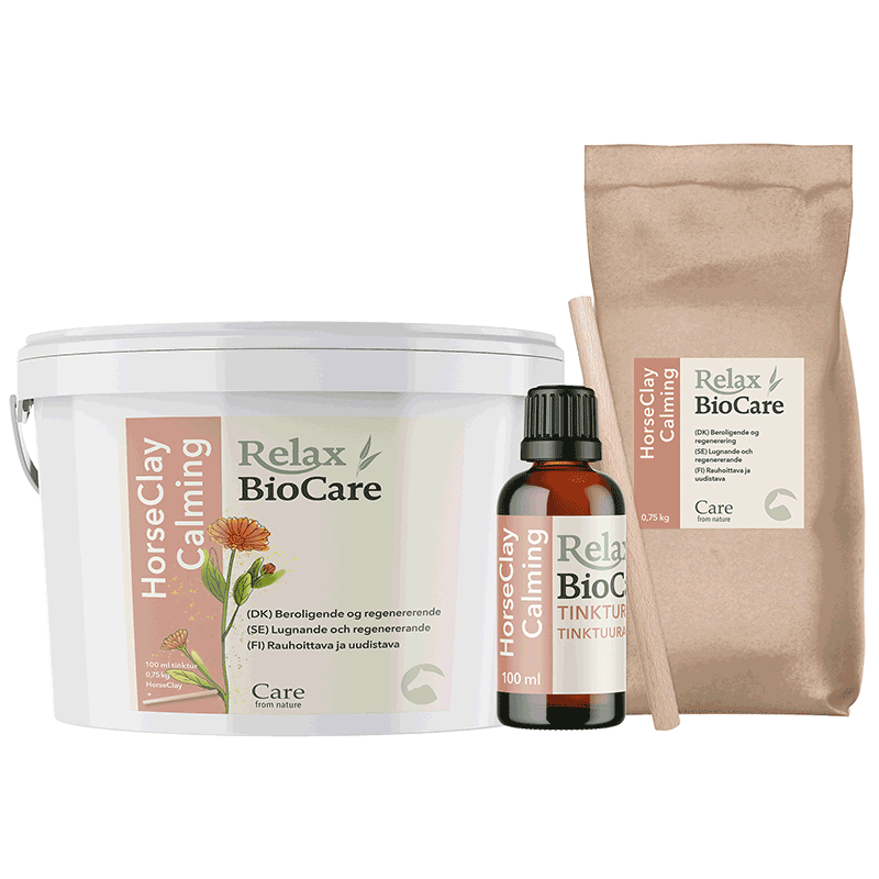 Relax BioCare – powered by St. Hippolyt Beroligende og regenererende HorseClay Calming er en mild og åndbar beskyttelse, der virker som et naturligt plaster virker regenererende og velegnet til brug på sarte hudområder nem i brug HorseClay Calming er et l