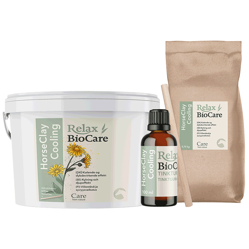 Relax BioCare – powered by St. Hippolyt Kølende og dybdevirkende effekt HorseClay Cooling er en mild og åndbar beskyttelse, der virker kølende bidrager til regenerering af vævet efter træningsbelastning nem i brug HorseClay Cooling virker som e