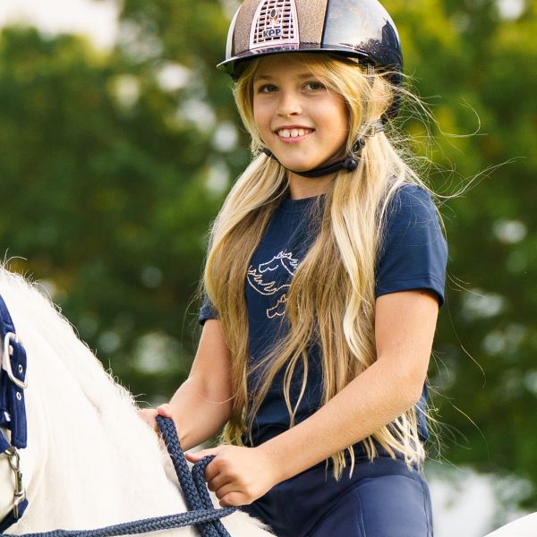 Smart jersey t-shirt med korte ærmer og rund hals. Den er smukt dekoreret med tre heste foran, som er fremstillet i smukke rhinsten. En super let t-shirt i utroligt blødt materiale, der vil give ekstra komfort.