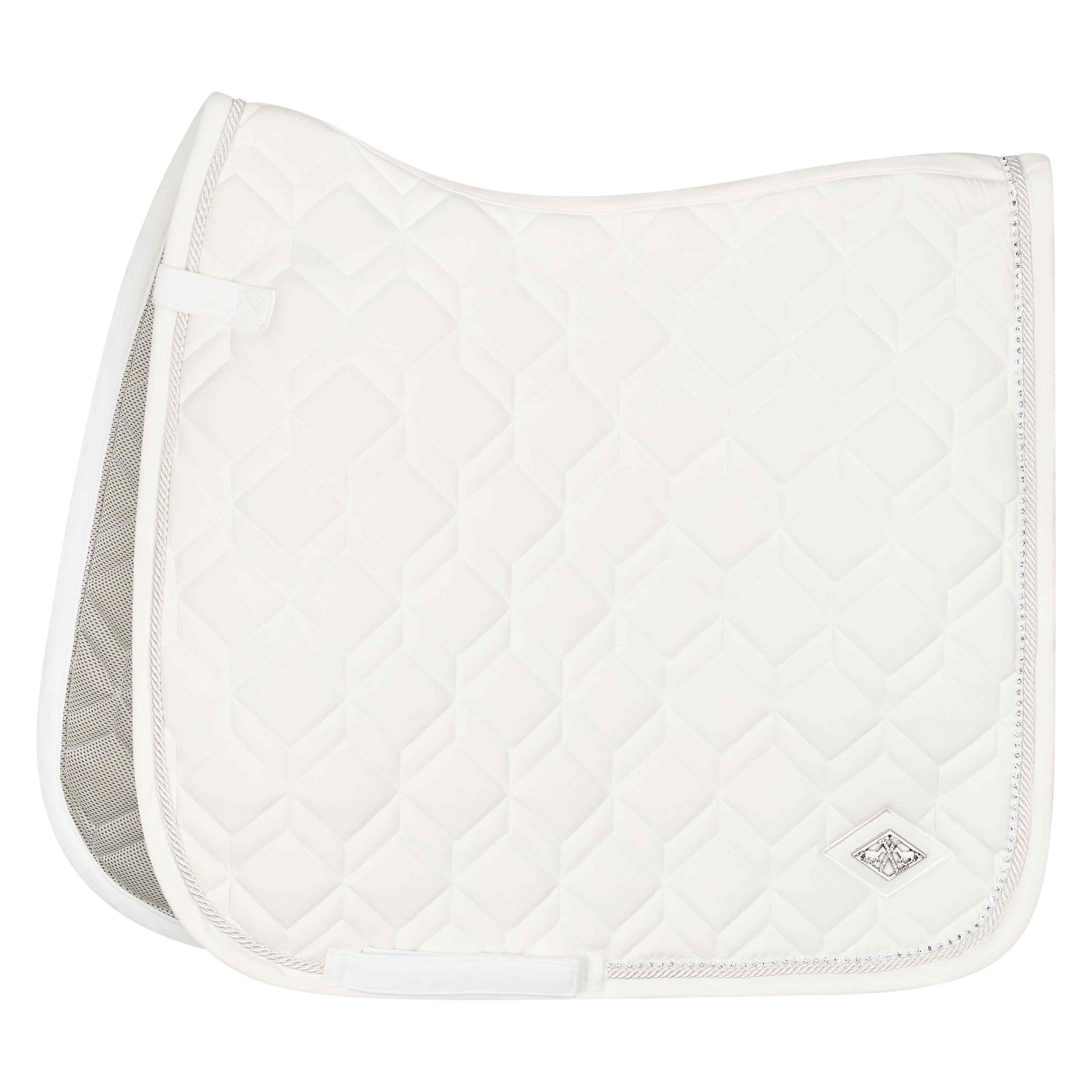 Lækkert dressurunderlag, som er anatomisk udformet i ryglinjen. Det er super åndbart samt har en absorberende inderside med cooling effekt. Åndbart og absorberende Anatomisk udformet ryglinje Antibakterielt Smudafvisende Flot quiting Pipe og krystaller ve