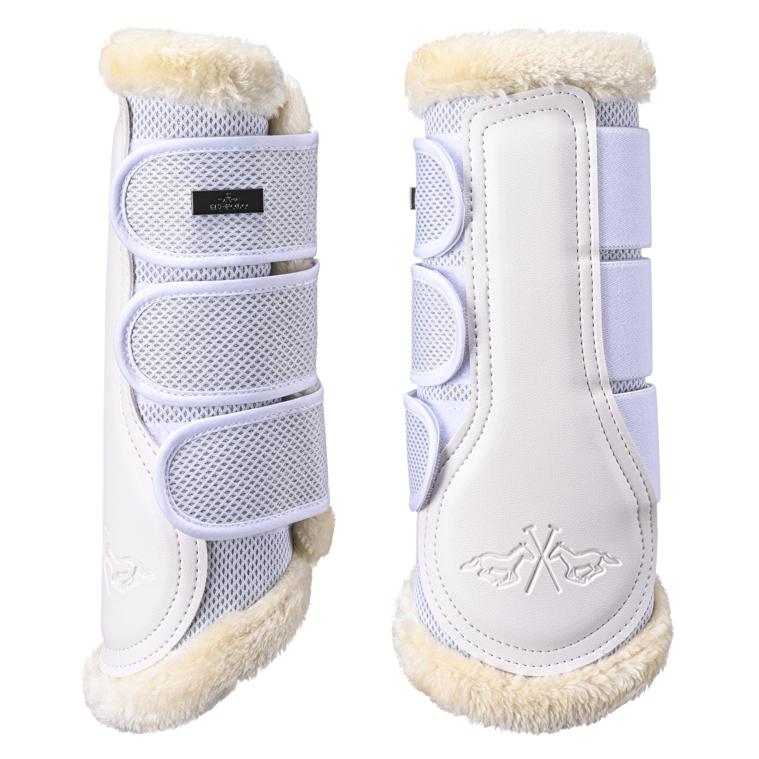Flotte dressurgamacher. De er fremstillet med glitter mesh for optimal åndbarhed, med plys på indersiden og er anatomisk udformet. De lukkes med velcrobånd og er med stødabsorberende neopren i mellemlaget, samt de er med ekstra beskyttelse på indersiden.