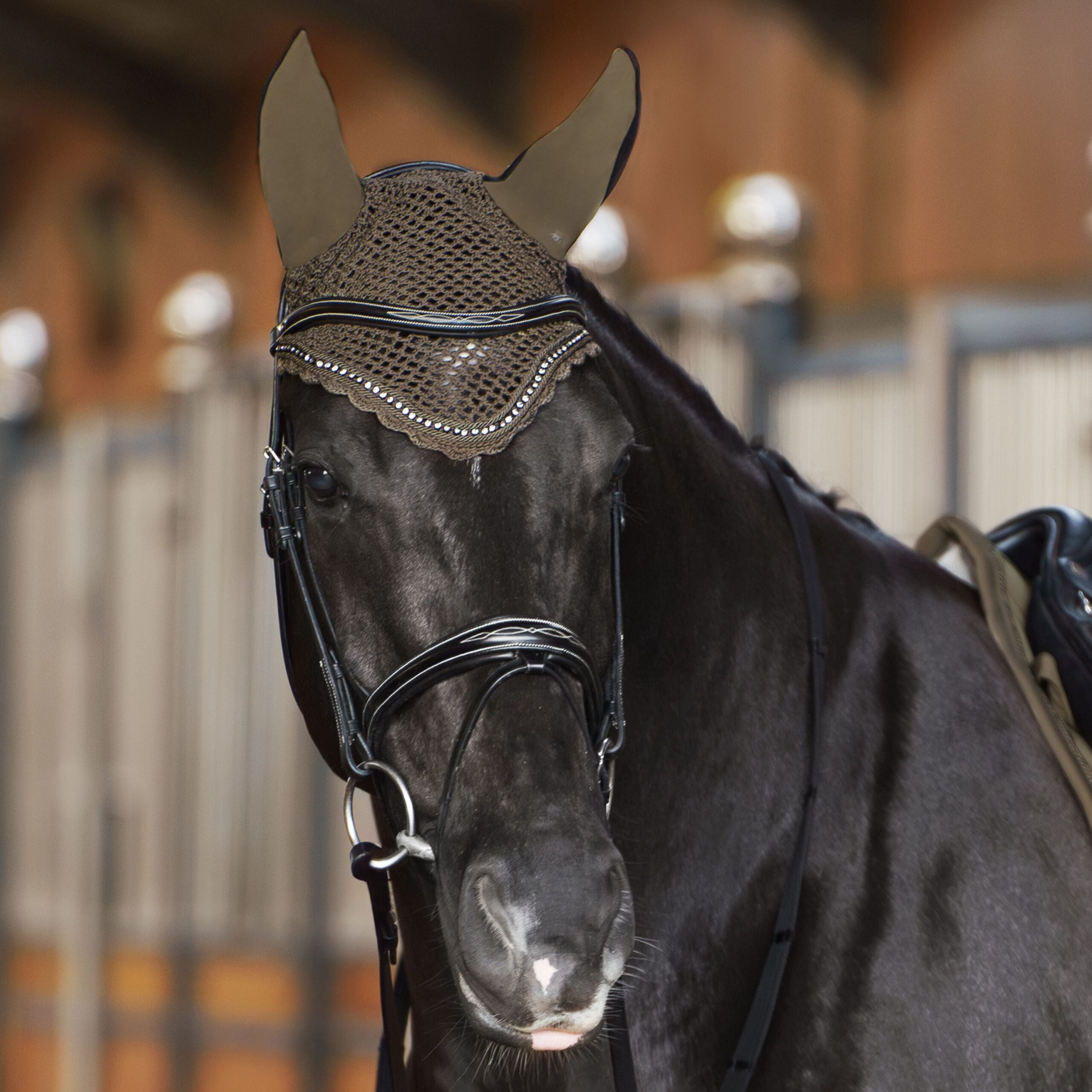 Blød, flot og virkelig åndbar hut fra HV-Polo. Den sidder rigtig fint på hesten og giver den optimal komfort. Smukt dekoreret med krystaller langs kanten på fronten.
