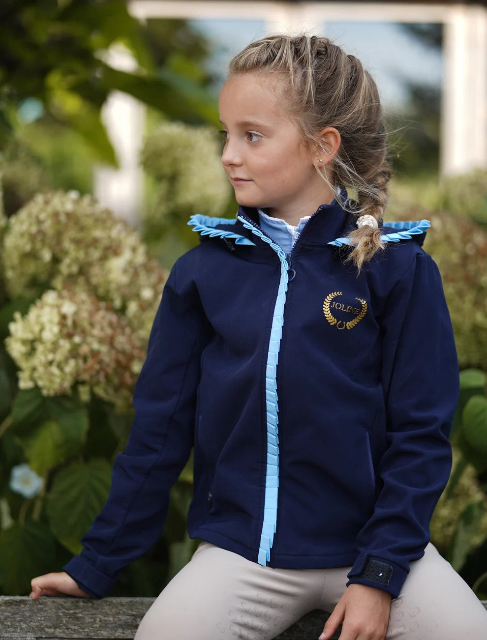 Softshell jakke til børn fra Joline. Dette er en letvægts jakke med hætte, som er lavet i top kvalitet. Den lukkes med gennemgående lynlås, samt den har 2 lynlåslommer foran og elastik i hætten. Jakken har smukke detaljer langs lynlåsen og hætte kanten, s