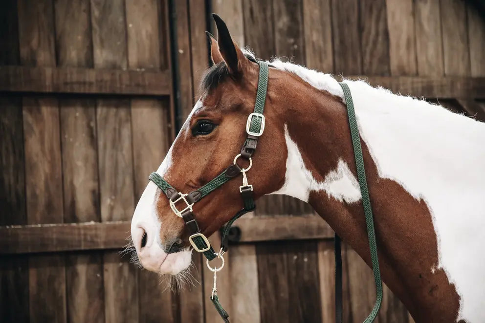 Denne Kentucky Plaited grime er en grime fremstillet af flettet nylon og er udstyret med foring og forstærkninger lavet af kunstlæder. Kunstlæderet er blødt og blevet udviklet specielt til at undgå at suge sved og regn, hvilket hjælper med at forhindre gn