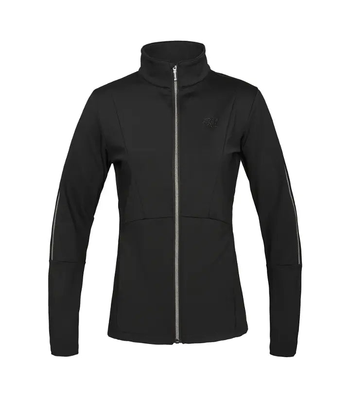 Rigtig flot trøje fra Kingsland. Trøjen er figursyet med fine striber ned langs ærmerne i grå og sort/sølv. Der er broderet KL logo på brystet og Kingsland logo ved det ene ærme. Lynlås vedhænget har små krystaller som en ekstra detalje.
