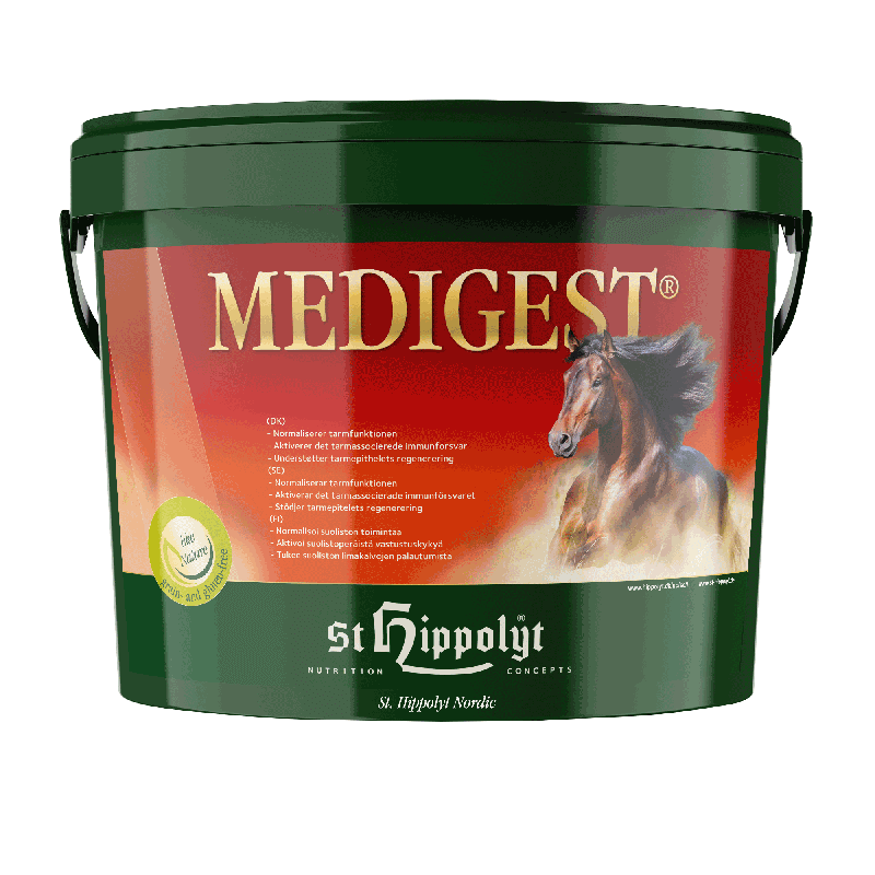Normalisering af tarmfunktionen Medigest har et højt indhold af bioaktive cellevægsbestanddele fra gær, mælkesyrebakterier, vegetabilske polysaccharider og funktionelle fibre, som stimulerer tarmfloraen. NB: Ved mistanke om svigtende hygiejnisk kvalitet p