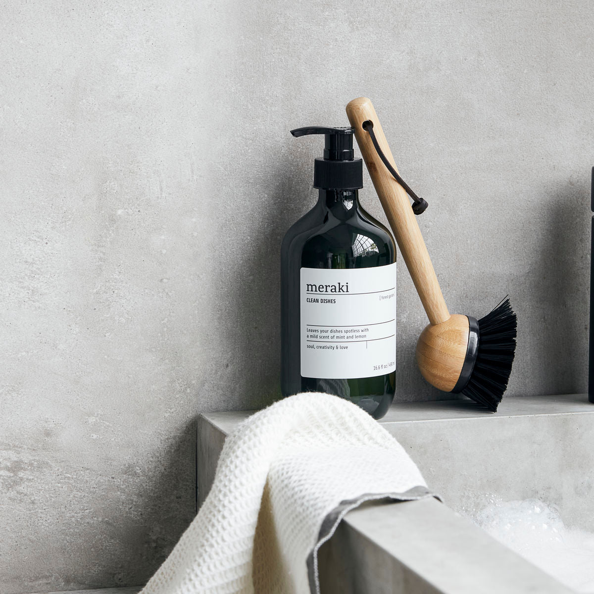 Overrask én du holder af med en fin gave. Denne gaveæske fra Meraki indeholder to uundværlige ting til køkkenet. Nemlig en opvaskesæbe og en opvaskebørste. Opvaskesæben hedder Forest Garden og er Svanemærket. Den har en fin duft med noter af pebermynte og