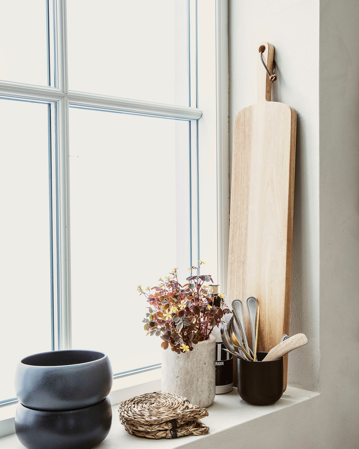 Med dette aflange skærebræt fra Nicolas Vahé behøver du ikke hælde alt over i skåle, når du skal servere tapas. Bare stil glassene med dips, tapenade og pesto på brættet og stil på bordet. Det er en helt igennem stilfuld og samtidig nede på jorden måde at