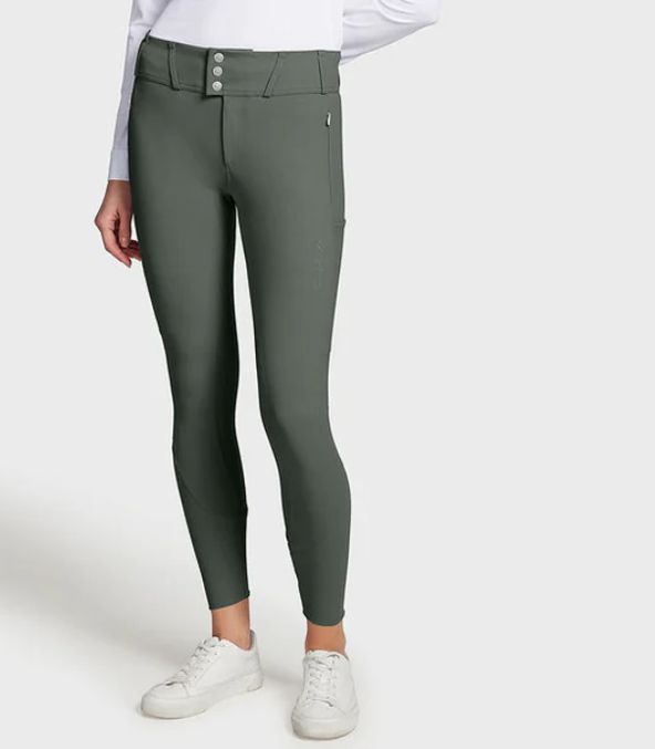 Even ridebukser fra Samshield er et par højtaljede ridebukser med en bred elastik talje. De lukkes med tre trykknapper og lynlås, og de har gode bæltestropper samt en indvendig elastik, som forhindrer en bluse i at glide op.