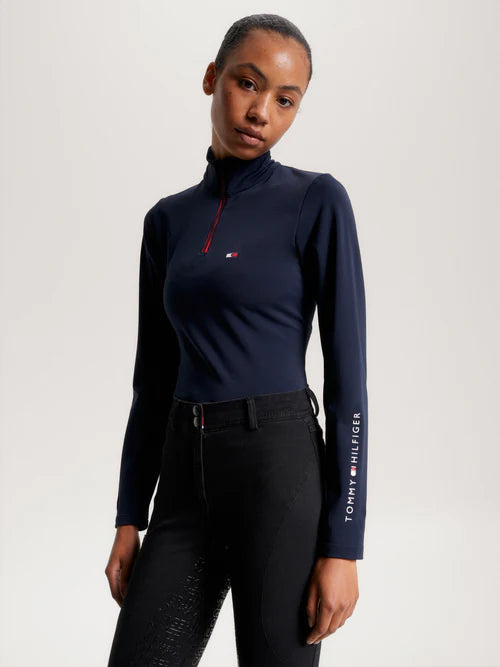 Tommy Hilfiger – Dame, trøje, termo, 1/4 zip, desert sky – L – Tommy Hilfiger Equestrian