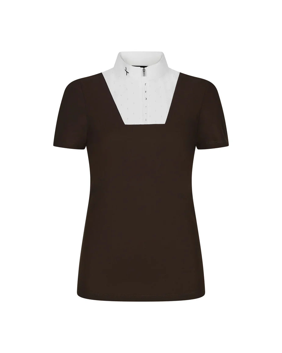 Oplev den ultimative komfort og stil med Trolle aero polo stævnebluse til damer i den elegante farve Navy Taupe. Denne stævnebluse er designet til den kvalitetsbevidste rytter, der ønsker både funktionalitet og æstetik i ét produkt.