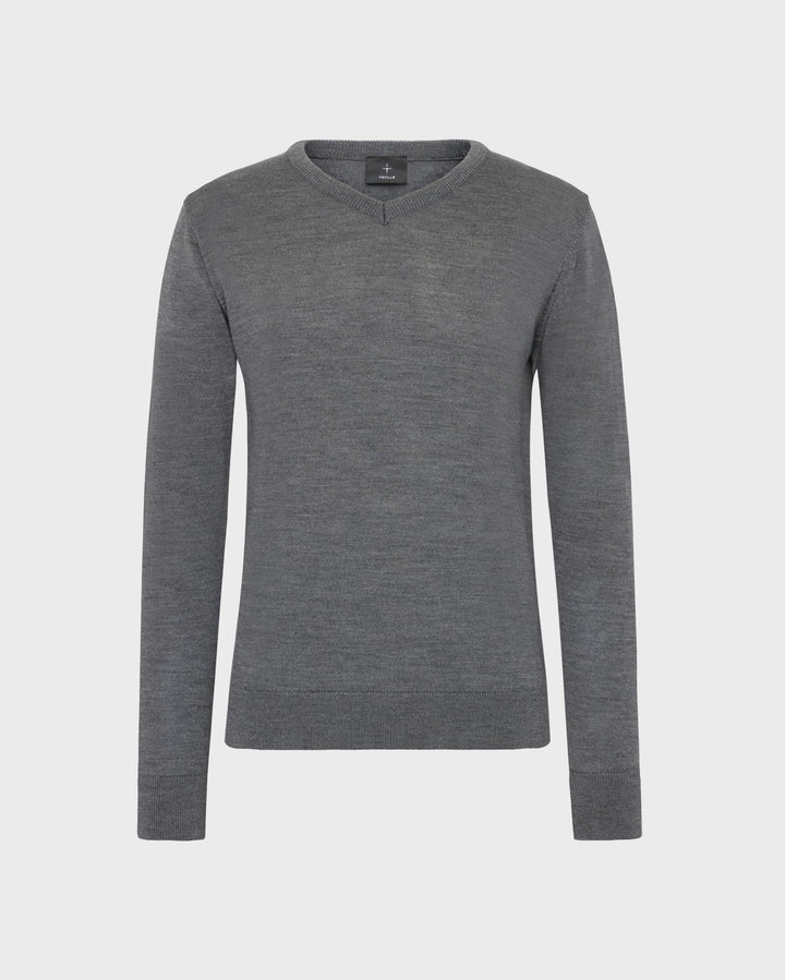 Trolle, Extra fine merino, v neck, Mænd – Grey – L – Trolle