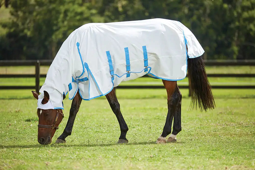 Weatherbeeta – Eksemdækken, Sweet itch shield, Combo neck – 6’9 / Hvid/blå – Weatherbeeta